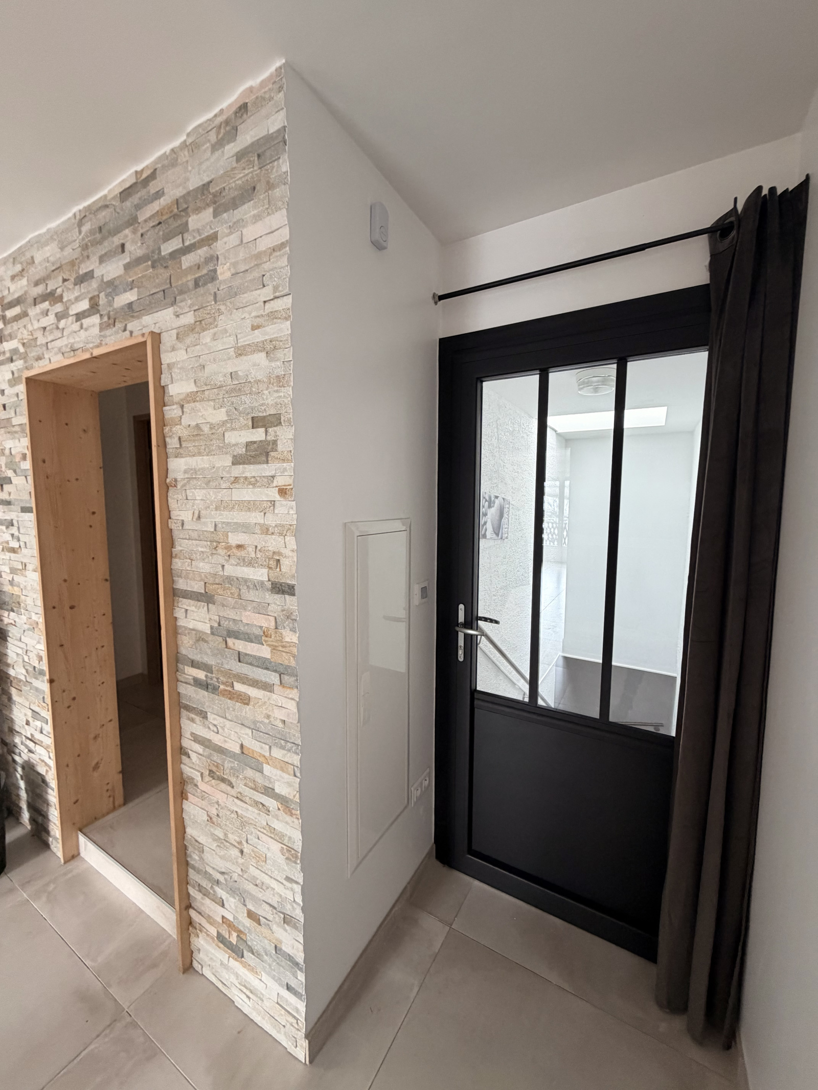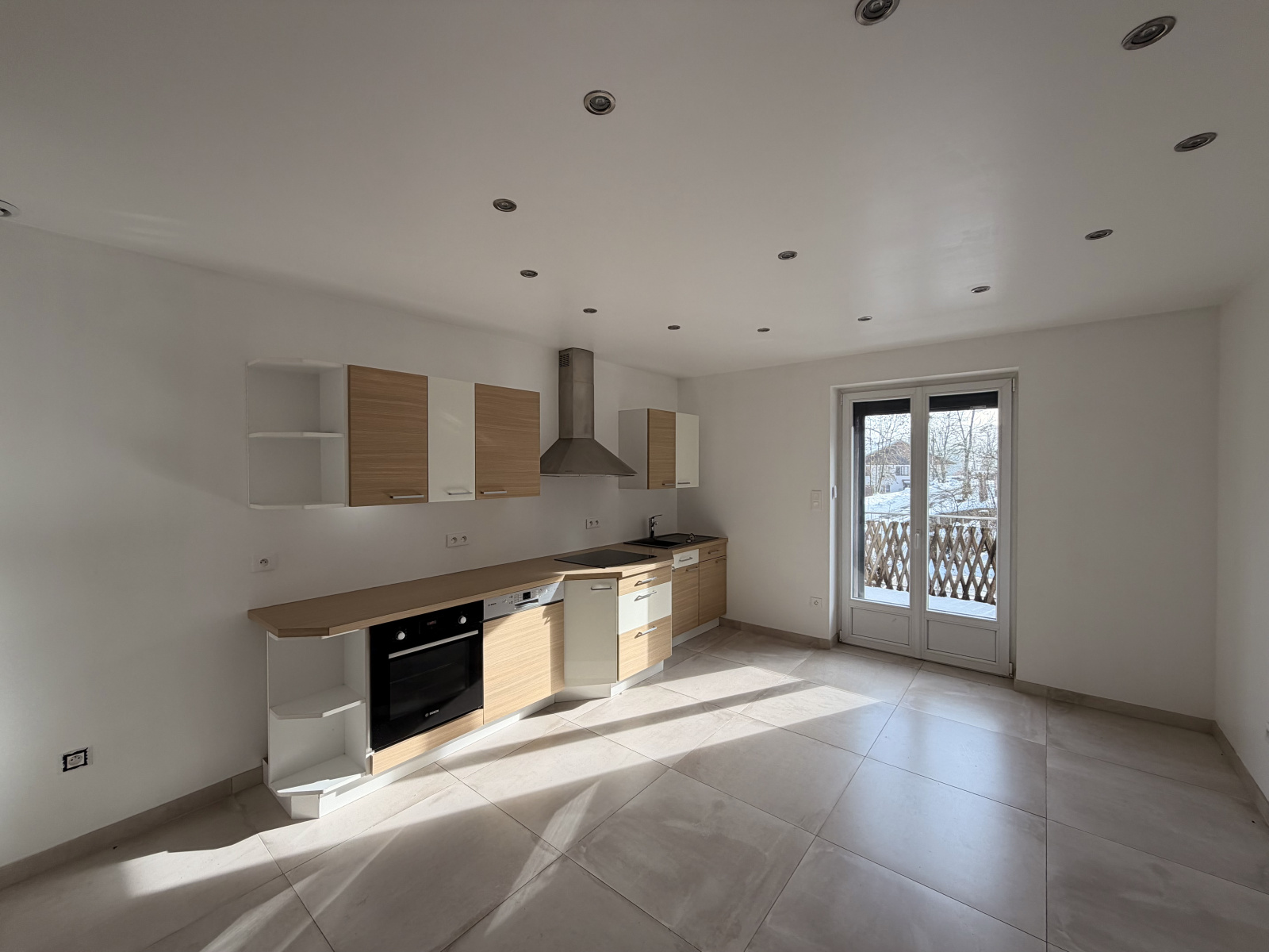 Entrée , une vaste pièce de vie avec cuisine ouverte-équipée, accès sur la terrasse.