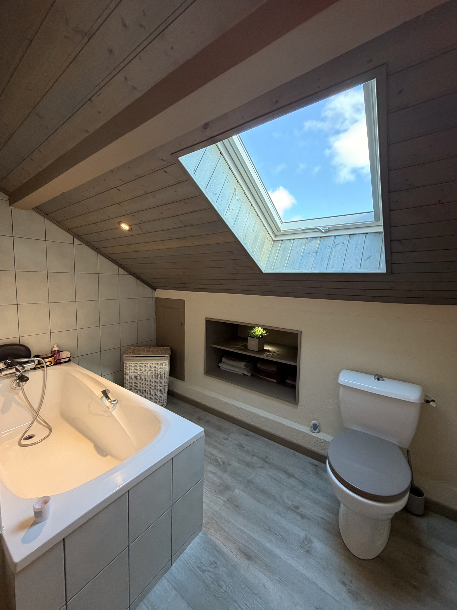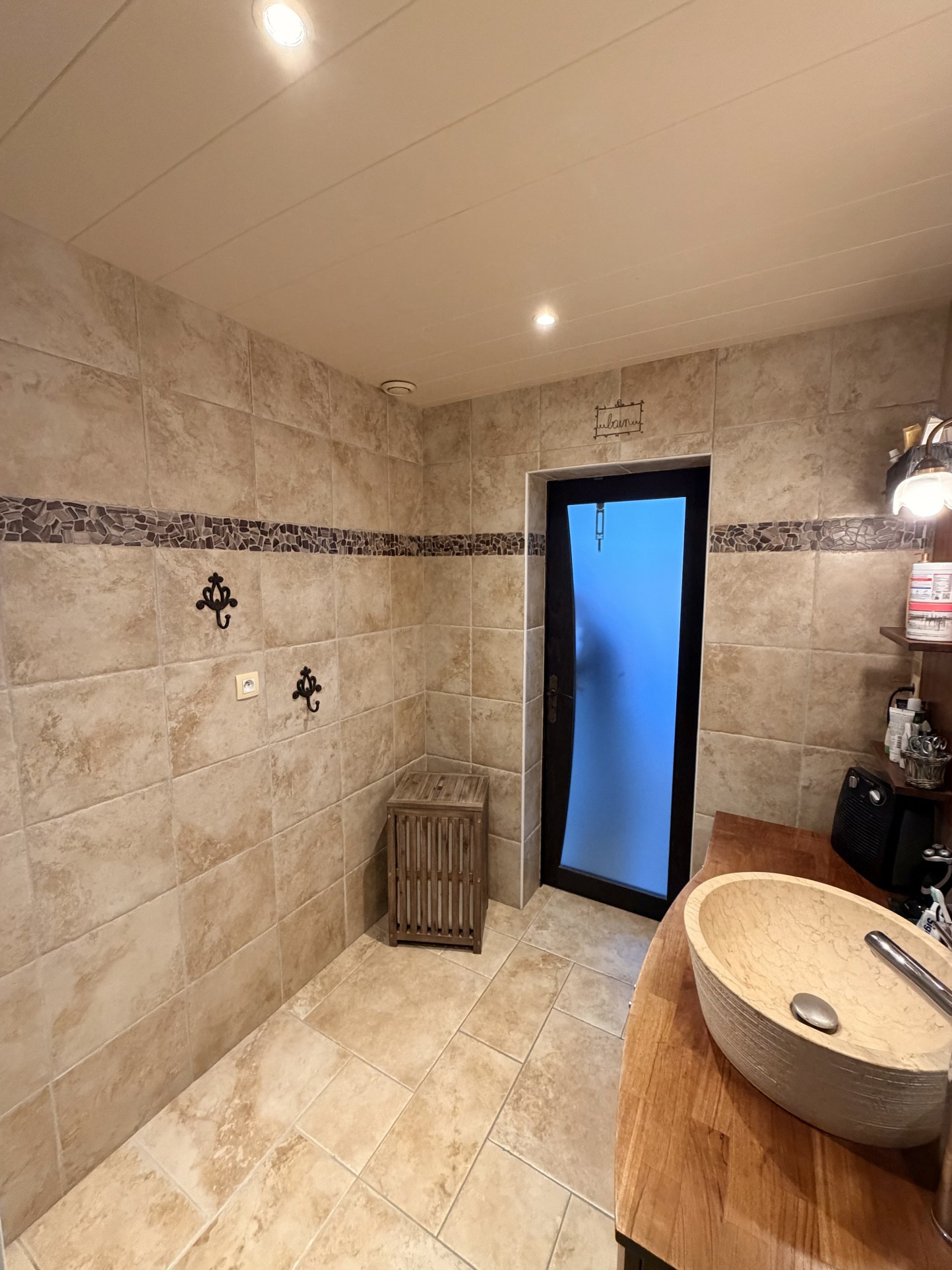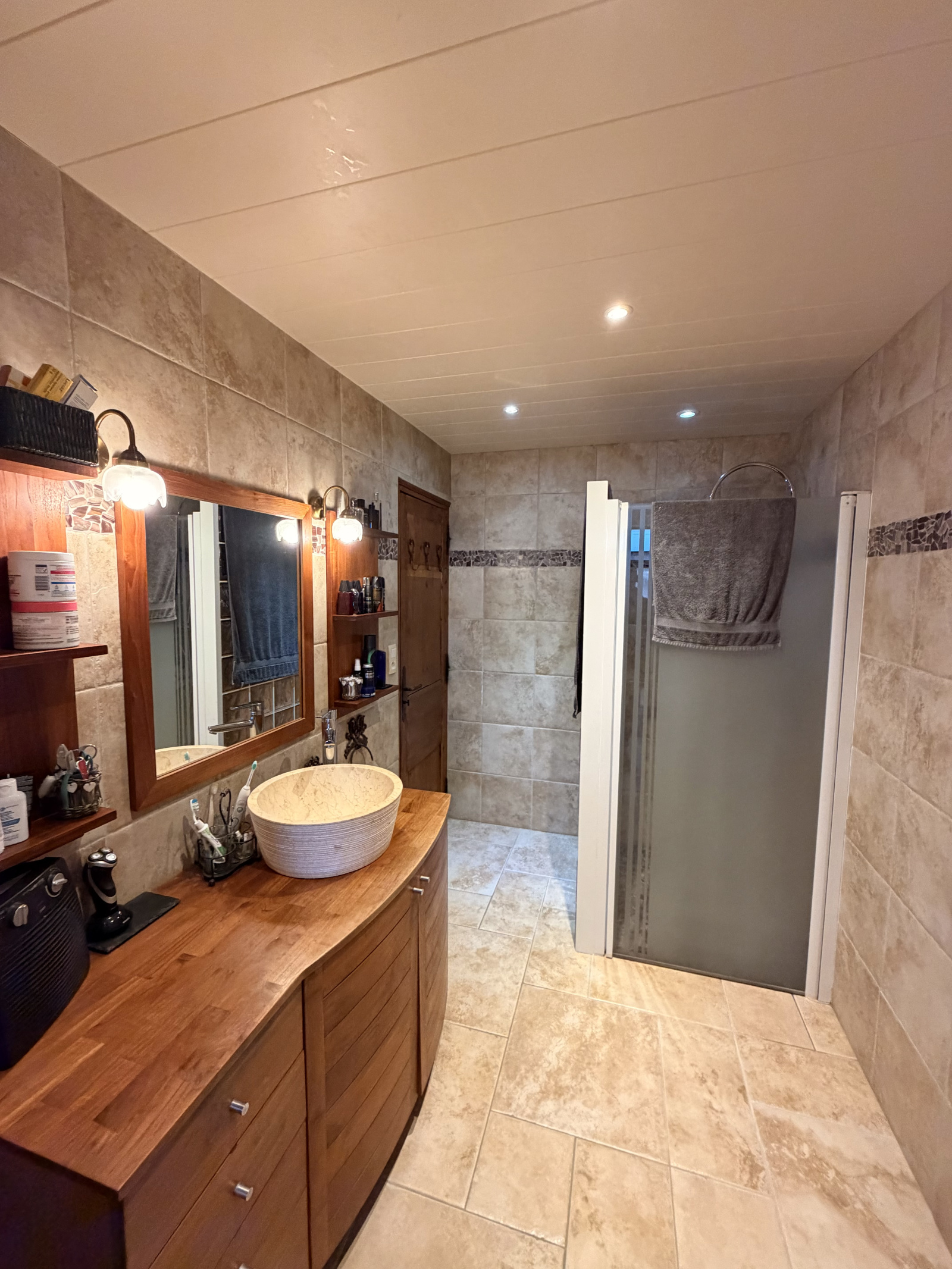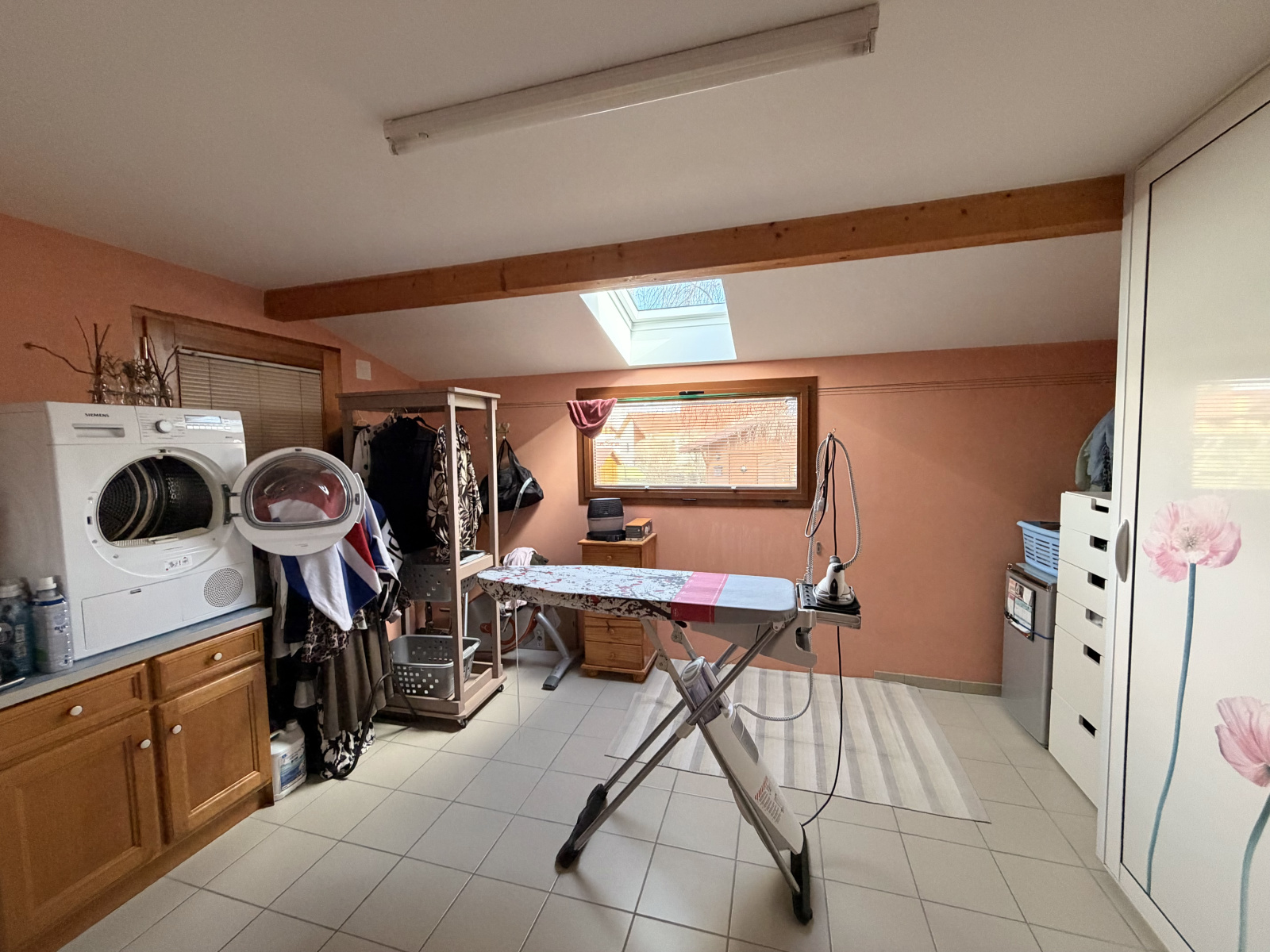 Un salon très cosy . Chambre principale avec salle de douche attenante et grande pièce lingerie équipée de nombreux rangements.