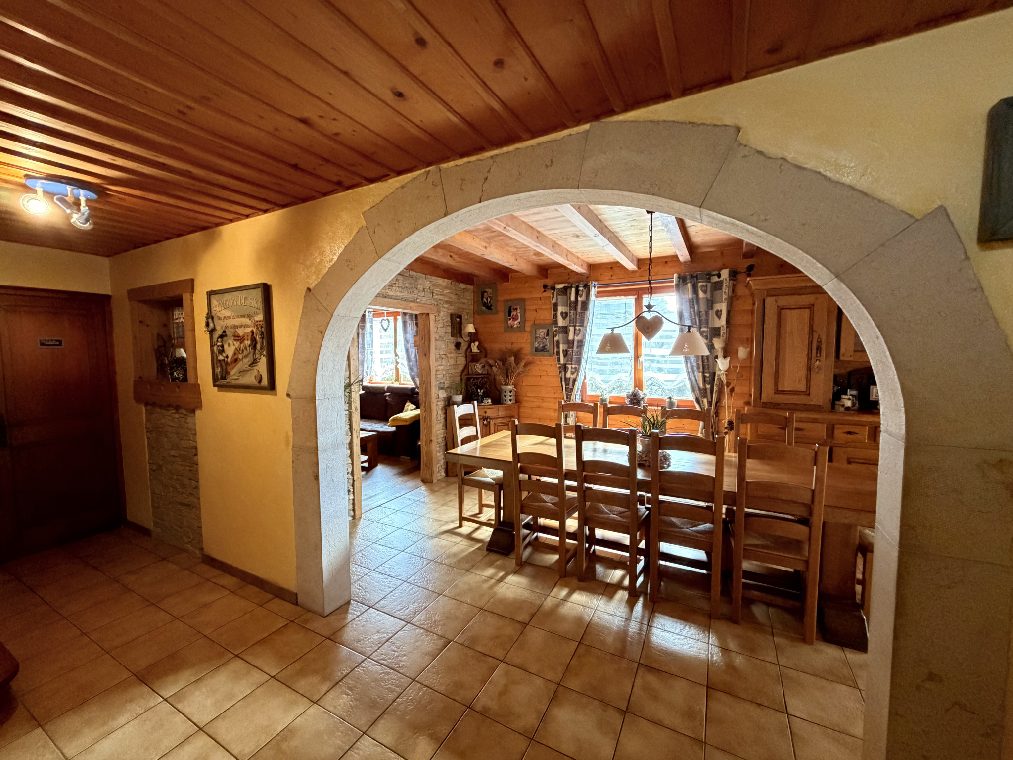 Hall d'entrée , une très belle pièce de vie avec cuisine entièrement équipée , accès à la grande terrasse sans vis à vis.