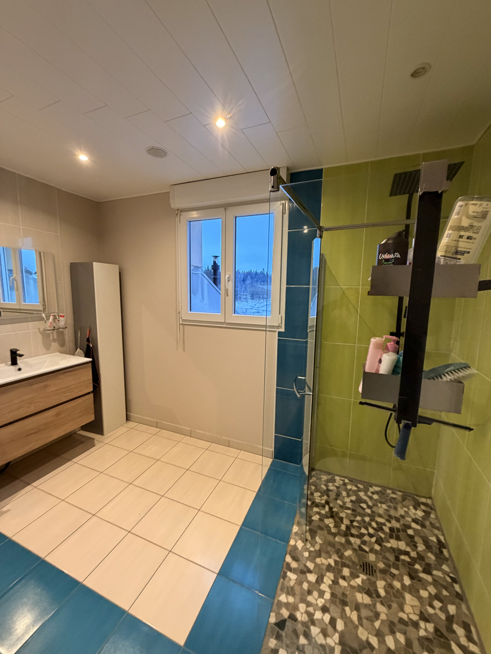 Deux chambres . Salle de douche spacieuse avec fenêtre.